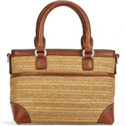 With the refreshing texture of a handcrafted straw bag, this bag is a woven material that is cut, sewn and trimmed with the finest leather. Celtic knot-inspired hardware symbolizes eternal love and friendship.