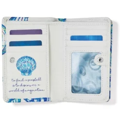 This wallet with our designer’s beautiful seashell art has a message on the back, “ To find a seashell is to discover a world of imagination.”