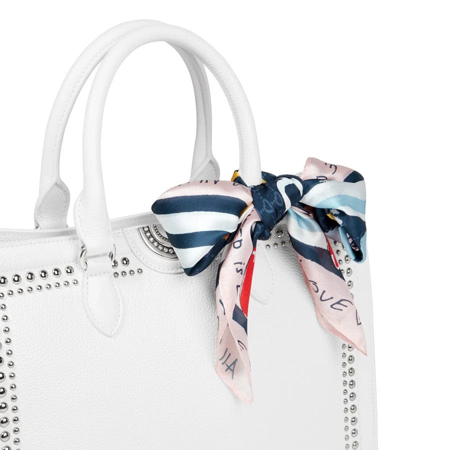 Designed by artist-in-residence Tom Clancy, this heart-adorned scarf is bursting with love. Colorful and vibrant, with the quote, All You Need is Love on repeat around its edges, this is an accessory that is as uplifting as it is darling!