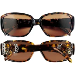Captivating and sparkling jewelry-like statement accents create a show-stopping effect on these glamorous sunglasses.