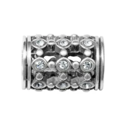 A simple geometric pattern of repeating fine quality crystals, intermixed with silver granulation, creates an elegant bead.