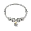 Wear your good luck charms close to your heart with this delicate chain necklace showcasing a message charm and emerald-hued crystal amulet.