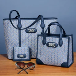 A stunning classic texture like the herringbone weave on this medium-sized wallet evokes refinement and longevity. It looks luxurious and also complements all the timeless Interlok jewelry.