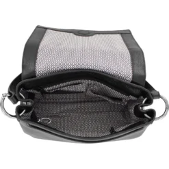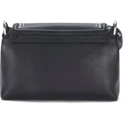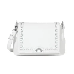 The classic flap bag silhouette gets a little modern edge with silver studs and bold hardware. It’s the perfect handbag to take from work to an evening out.