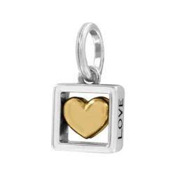 This perfect little golden heart is framed like a photo, beautiful, simple and contemporary. On its sides, it reads, LOVE ALWAYS.