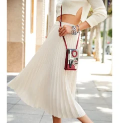 Get an instant fashion smile with this artful phone organizer that celebrates everything happy and colorful about 1970s cubist graphics – it will hold your phone and other essentials, too – hands-free!
