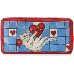 Every part of this tote created by designer Tom Clancy features his hand-drawn artwork, including the inside pocket with his own pup, Chip, and a playful kitten on the bottom. He was inspired by a vintage quilt to create this beautiful, large tote. The bow makes it like a present to yourself – or someone you love!