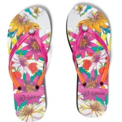 There’s a little bit of paradise at your feet with these flip flops blooming in exotic flower print original art – perfect for a holiday in Maui, or anywhere!