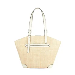 Inspired by colorful huarache sandals we spotted at a Sunday flea market, bright hues play perfectly with a creamy straw-like woven textile. All beautiful colors on their own, they’re particularly stunning combined on a panel of white leather.