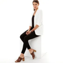 Stamped to look as though it is woven, this luxe leather vamp is hand finished, with embossed Ferrara medallions around the top. A stacked block heel lends a flattering lift to the leg.