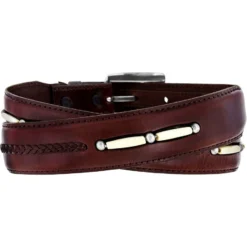 Understated beading and braiding add to the detailed refinement of this rich leather belt.