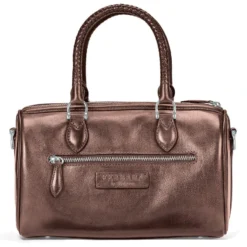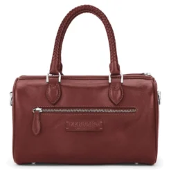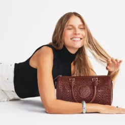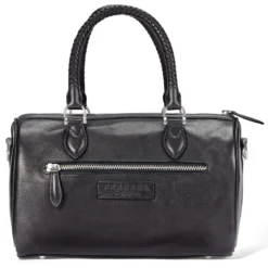 Double braided handles take the artisanship of this satchel over the top. It was developed through a close collaboration with designer Carmen Radulescu and a team of artisans in India – using thinly braided strips and irregular strips that are hand-woven together. Leathers are hand stained to imbue them with richness and luminosity. The front braided panel showcases a hand-stitched Ferrara medallion.